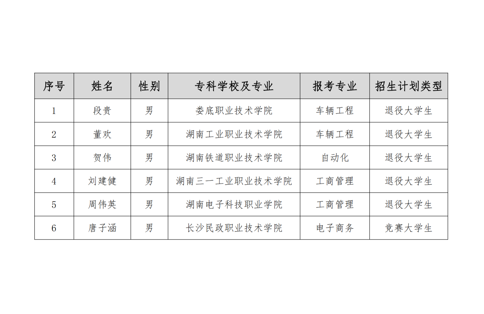 湘潭理工学院2023年专升本免试生征集志愿二拟录取名单公示